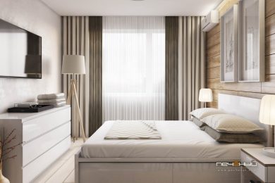 — Шторы: Полупрозрачные или плотные, лучше выбирать однотонные или с легким узором.